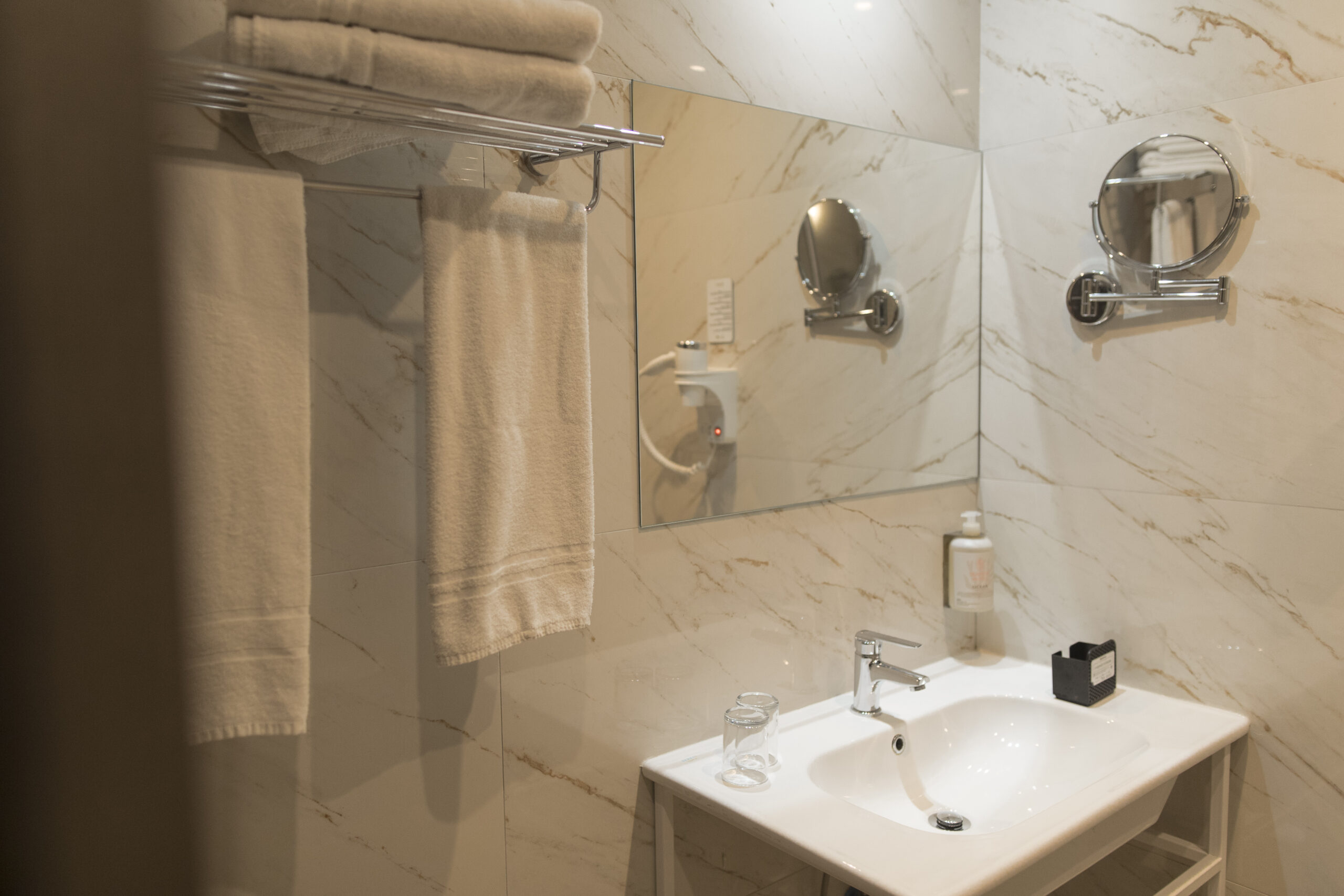 Additional amenities include a telephone, shaver socket, USB and international outlets, as well as an iron and ironing board.